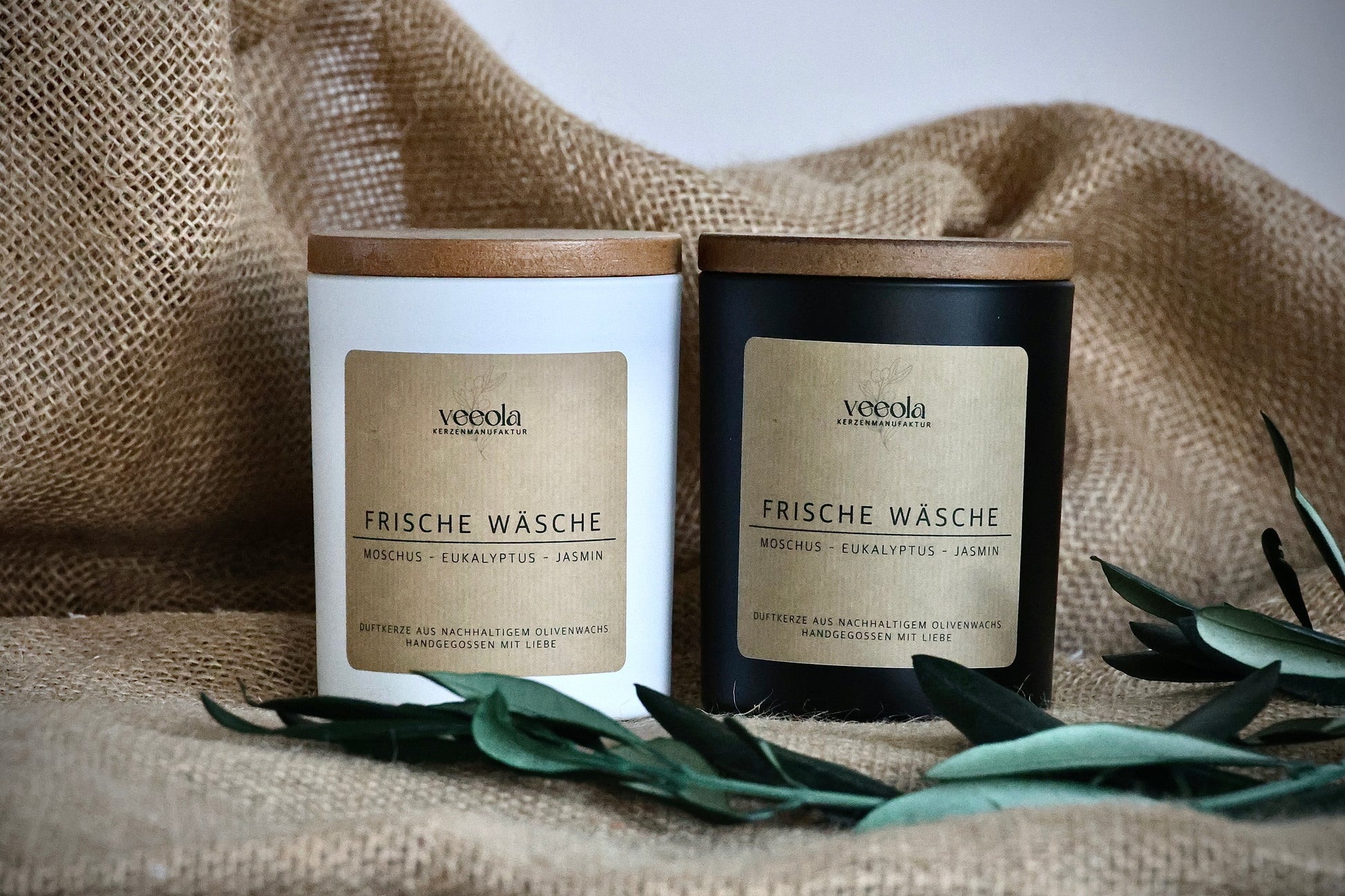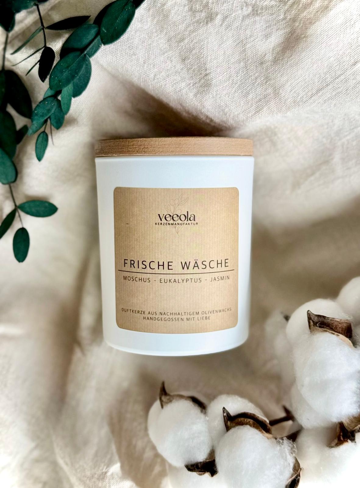Duftkerze aus nachhaltigem Olivenwachs und hochwertigem Duftöl.