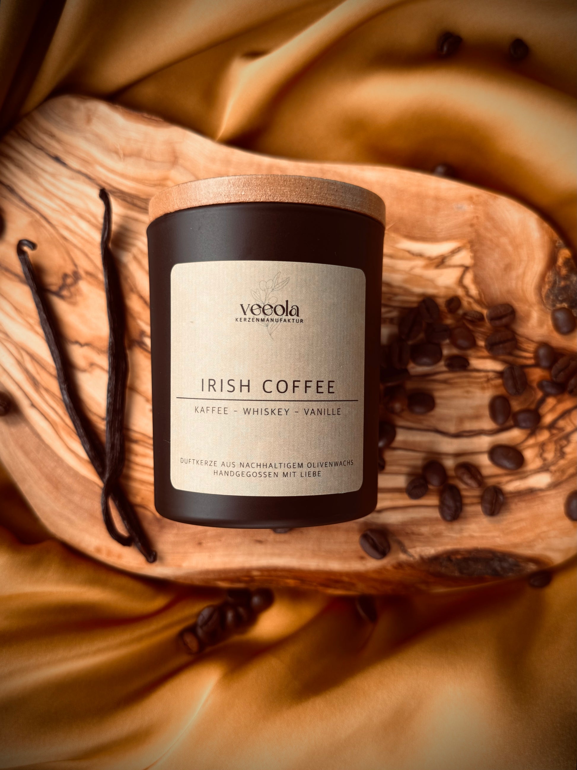 Ein verregneter Nachmittag. Das Prasseln des Regens am Fenster. In deinen Händen eine heiße Tasse - der Duft von frisch gebrühtem Kaffee trifft auf einen Hauch Whiskey und warme Vanille. Mit einem Streichholz bringst du diesen Moment zurück. Unsere 'Irish Coffee'-Kerze ist ein Kaminfeuer für die Seele - stark, sanft, und unwiderstehlich gemütlich.