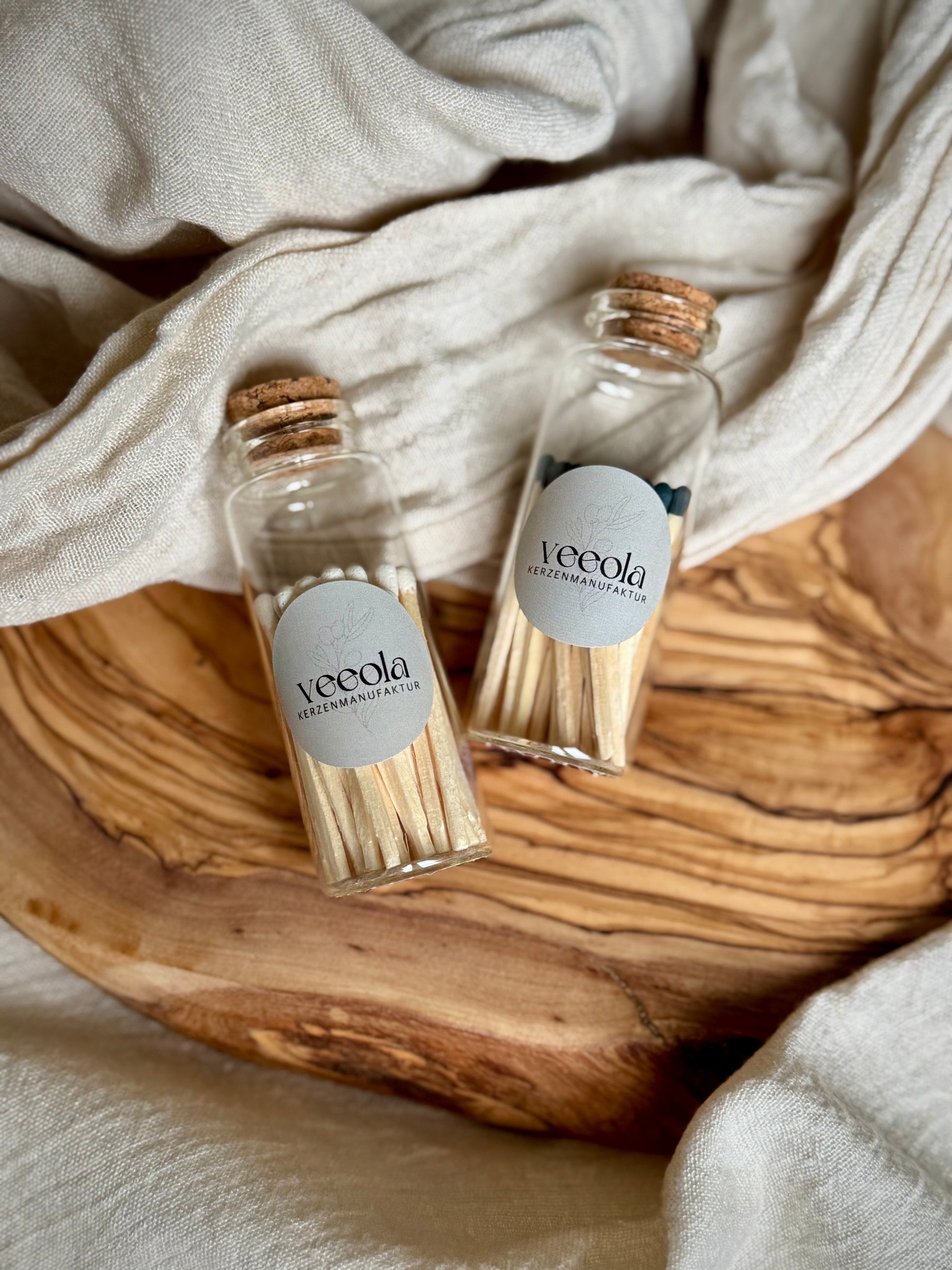 Klein, stilvoll und einfach unverzichtbar: Unsere handverlesenen Streichhölzer im hübschen Glas sind die ideale Ergänzung zu unseren nachhaltigen Duftkerzen aus Olivenwachs. Jedes Glas enthält 40 hochwertige Streichhölzer, sorgfältig abgestimmt auf unsere Kerzengläser in Weiß oder Schwarz – wähle passend dazu Streichhölzer mit weißen oder schwarzen Zündköpfen für ein harmonisches Gesamtbild.